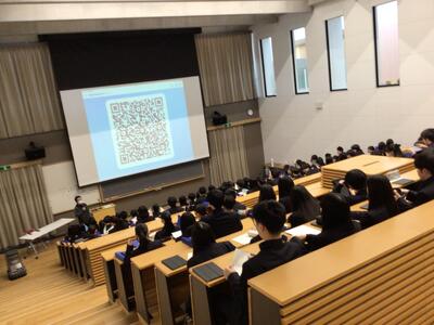 卒業まで770日の時間をいかに使うかというお話の後に総合型選抜を経験した先輩方のアドバイスがありました。生徒たちはこれから向き合うべきことを考えながら、真剣な表情で聞き入っていました。休み時間にはワークシートを使って、1日の生活時間の見直しをしている生徒の姿も見られました。2年後の進路実現に向けて日々の努力を大切にしてほしいなと思います。