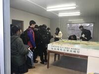 ③移設された仮設住宅、津波波高標識、緊急避難道路(笠神八幡線)と東北技術事務所災害対策用機械格納庫の見学、説明