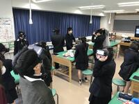 12月12日(金)、福祉や医療への理解を深める取り組みの一環として、3年次の学校設定科目「保育・福祉」を選択している生徒を対象に、VRゴーグルを用いた認知症体験学習を実施しました。このプログラムでは、認知症の方が日常生活で直面する困難を、仮想現実を通じて体感します。今回は、「認知症による視空間失認」と「レビー小体型認知症による幻視」の2つの症状を体験しました。この2つの体験から、認知症の方がどのように感じているのか、そして周囲の人にどのように接して欲しいと思うのかを考えました。生徒はVRゴーグルを装着し、認知症の方がどのように世界を感じているのかを疑似体験しました。この学習を通じて、「認知症の方はどのように接してほしいと思っているのか」を考え、理解と共感を深めることができました。