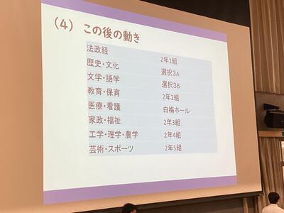 前半は「2年次の甲斐たいむについて」、後半は「分野別課題研究について」という内容で説明がありました。