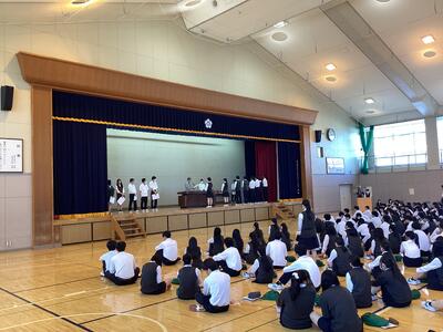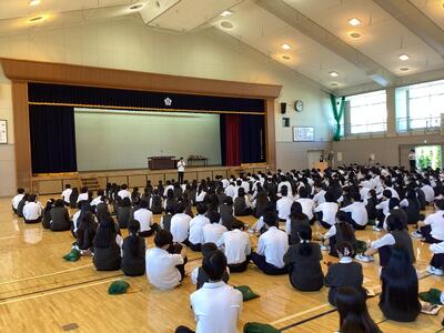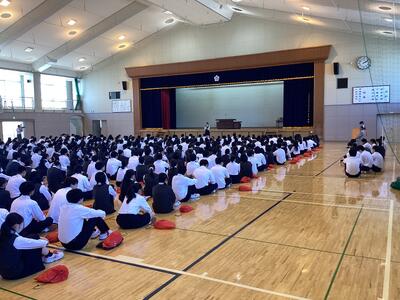 12月24日(水)、冬休み前の全校集会が開かれました。 集会では、校長先生より、