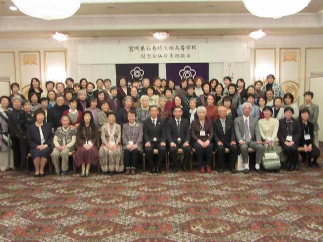 総会後、母校を応援する会(懇親会)が、同窓会会長、仙台支部長、高校時代の恩師等総勢87名が参加され、盛大に行われました。同窓会長さんの石巻日日新聞を持参されての挨拶や、恩師の先生方からその当時の話を聞いて、地元石巻を思いだし、多くの方々が高校時代の懐かしい話で盛り上がっていました。