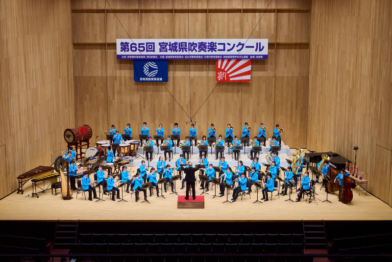 令和4年12月17日・18日,「マルホンまきあーとテラス」大ホールを開場に第56回全日本アンサンブルコンテスト石巻地区大会が開催されました。コロナ禍にも関わらず管内のほとんどの団体から約80チームが参加しました。そのうち高校の部には,本校からも出場枠一杯の5チームが参加し,今年もすべてが「金賞」を受賞しました。