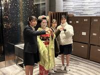 12月3日は班別自主研修です。研修先は、嵐山、伏見稲荷神社など生徒が事前に計画した場所に行き、様々な見学や体験をして自主研修を無事に終えました。ホテルでは、生徒の帰りを舞妓さんが出迎えてくれました。