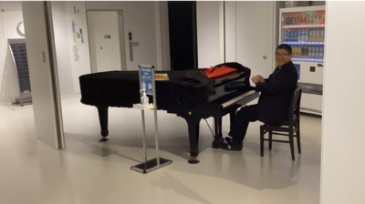 ③ 本校には、昼休みや放課後に誰でも演奏できるピアノが置いてあります。クリスマスが近づいたある日、「White Christmas」の曲が流れていました。誰が弾いているのか気になり見に行くと、校長先生が弾いていました。