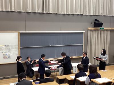 最後に、交通安全委員長がお礼の挨拶ともに、自分だけで気を付けるのではなく、周囲にもルール遵守を呼びかけたいと決意を述べ、交通安全講話は終了しました。