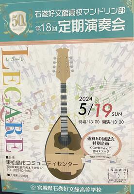 「石巻好文館高等学校マンドリン部 第18回定期演奏会」を、次の日程で開催いたします。
