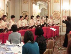 懇談の前には、イングリッシュハンドベル・ミニコンサートで開かれました。富谷町を拠点に活動している「ブルーベル」のみなさんが奏でるハンドベルの軽やかで清々しい音色に、参加者一同しばしの間聞き入っていました。