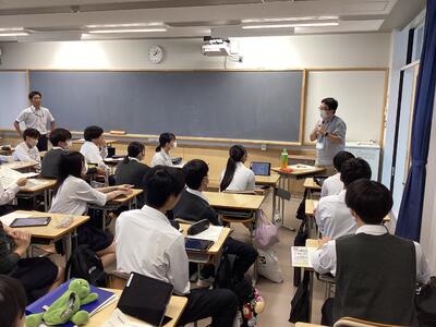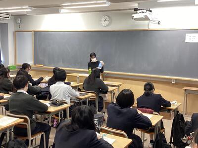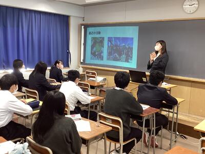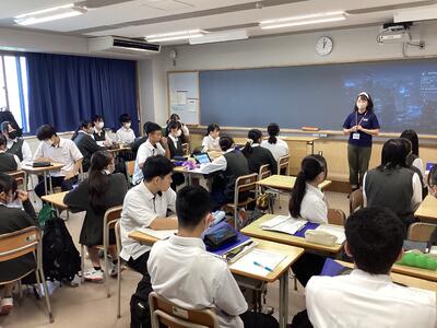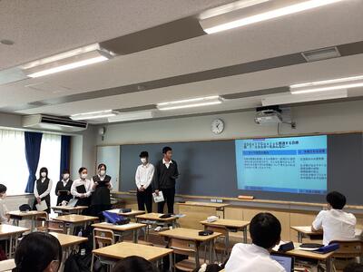 9月27日の1年次の「甲斐たいむ」は、SDGs探究活動の中間発表を行いました。各クラスにNPO団体の方をお招きし、自分たちが立てたテーマ、地域の現状、解決策、今後の課題などについて、班ごとに発表しました。その後、講師の方からアドバイスをいただきました。アドバイスをいただいたことで、自分たちに欠けていた視点に気づいたり、ものの見方が広がったり、学びの多い時間になりました。