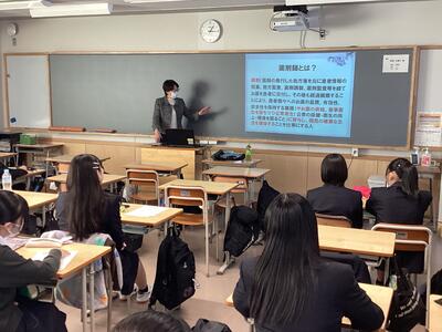講師の方のお話を聞いて共通していたのは、相手・お客さん・患者さんへの「配慮」を絶対に忘れてはいけないということでした。人が社会に出る上で、配慮は欠かせないものだし、私が社会人になったときも、周りをよく見て気遣いができる人間、思いやりのある人間になりたいと思います。私は今のところ、化粧品関係の仕事に就きたいと思っていますが、その仕事に就くまでの進路はいろいろあるため、積極的に調べたり、まわりにいるたくさんの大人の話を聞いたりしようと思います。自分が「こうしたい!」という意志をもって行動しないと、目標は叶えられないので、自分からチャンスをつかみにいって積極的に行動していきたいです。