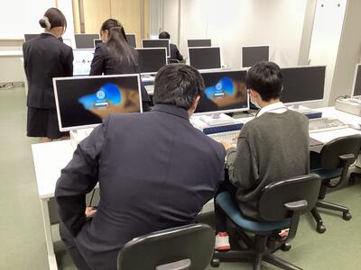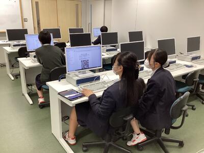 11月15日の2年次「甲斐たいむ」は、「グループごと研究活動」。分野別の教室に分かれて、グループごとに活動しました。特にアンケートを利用する班は、急ピッチで作業を進めていました。グーグルフォームでアンケートを作成し、QRコードをつくり、グーグルドキュメントで配布用紙を作ります。印刷はコンピューター室。コンピューター起動⇒ログイン⇒データ読み込み⇒印刷という作業を、なんとかコミュニケーションをとりながらやり遂げていました。