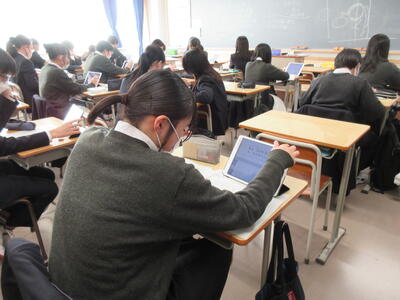 12月13日の1年次の「甲斐たいむ」は、1年間の振り返りです。まず、入学後すぐに自分で考えた「石巻好文館高校を卒業後やってみたいこと(志)」や「今年1年間でやるべきこと(目標)」を振り返りました。その後、「在り方生き方研究」、「SDGs探究活動」などの1年間の「甲斐たいむ」を通して考えたことや学んだことを、自分の言葉でまとめました。最後に、入学直後に立てた目標の達成度とその理由をまとめ、1年間の取り組みの成果と課題を分析しました。