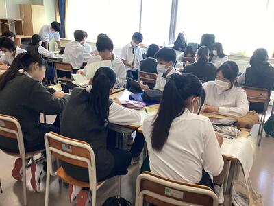 9月6日(水)の3年次「甲斐たいむ」では、グループディスカッションのガイダンスおよび情報収集を行いました。ガイダンスでは、「どの意見が正しい、間違っていると対立するわけではなく、意見を出し合うことで納得できる合意形成を見いだす」つまり、「発展的対話力」と「論理的思考力」を高めていくことを目的としてディスカッションに取り組んでいくことや、ディスカッションの進め方や今後の活動計画が説明されました。その後、次回からの活動に向けて、情報収集を行い、この日の活動は終えました。