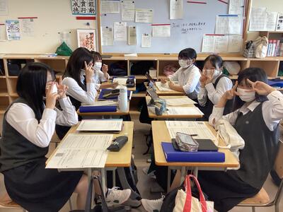 9月6日の1年次「甲斐たいむ」は、SDGsプロジェクト立案の3回目。グループで、テーマに関する「地域の現状」を調べました。「不登校」、「肥満率」、「空き家の数」、「貧困率」など、それぞれのテーマについて、石巻市の現状や課題を考えます。全国や宮城県と比較したり、グラフを用いてポスターにまとめたりしている班がありました。