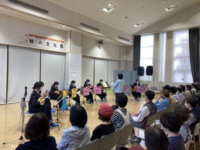 10月9日、あいプラザ・石巻で開催された「秋の文化祭」にて、本校マンドリン部、音楽部が演奏を披露しました。
