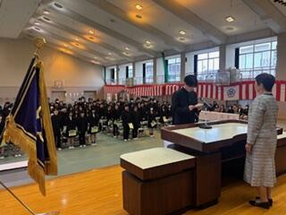 卒業生の皆さん、同窓会へようこそ!佐々木会長の元気な挨拶に少々戸惑いを見せながらも、最終登校日となる2月27日、今年も粛々と同窓会入会式が行われました。