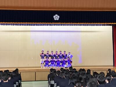 4月11日に対面式と部活動紹介が行われ、新入生と在校生が初めて顔合わせをしました。対面式では、加賀谷校長先生と生徒会長から歓迎の言葉があり、新入生の代表生徒からは「好文好武を自覚し、学習と部活動を両立したい」と決意表明がありました。