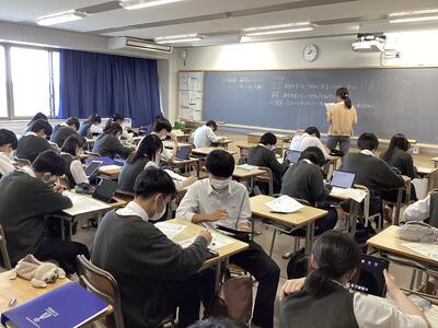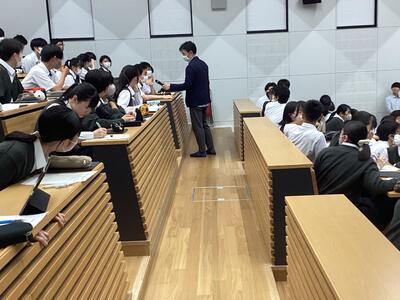 6月14日の1年次の「甲斐たいむ」は、まちづくりスポット仙台の玉田氏を講師としてお呼びし、「探究とは何か」や「探究活動の進め方」などについてお話をいただきました。玉田さんから、「「探究」の目的は「自分が前に進むため」、「支援したい人を前に進めるため」、「世の中を良い方向に変えていくため」」というお話があり、これまで持っていた「探究」のイメージが変わったという生徒が多くいました。