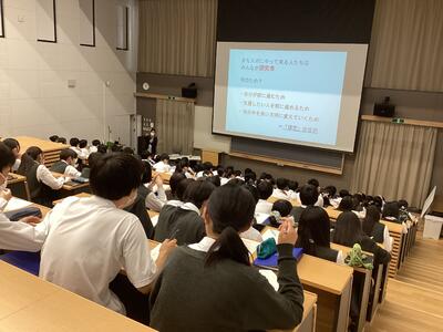 今後は、グループに分かれて課題やテーマを設定し、いよいよ探究活動が本格化します。今回のお話を生かし、「探究」の目的を達成できるような有意義な活動となることを期待します。
