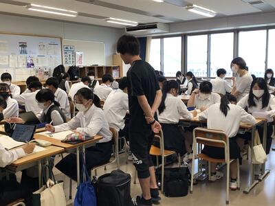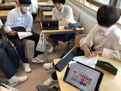 7月19日の1年次の「甲斐たいむ」は、グループで「石巻の魅力」について話し合いました。前回話し合った、「興味を持ったSDGsの目標」に関連した「石巻の魅力」を、マインドマップを用いて数多く挙げていきました。自分が暮らしている身近な地域を、いつもとは異なる視点で見ることにより、石巻の新たな魅力を発見した生徒もいたようです。