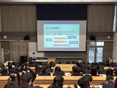 大学の先生からの講話は、生徒にとって新しい刺激になり、とても貴重な時間になりました。これを、個人探究やグループ探究へとつなげていくことが大事になってくるので、この経験を忘れずに学習に取り組んでいってほしいと思います。