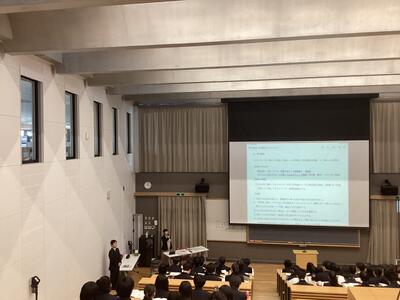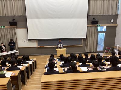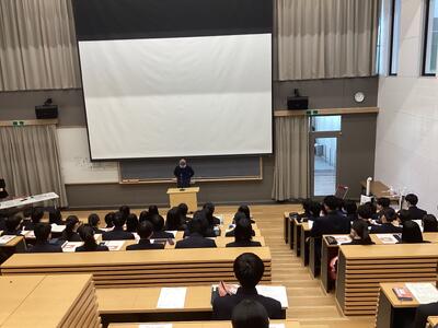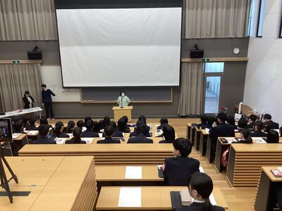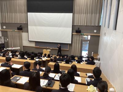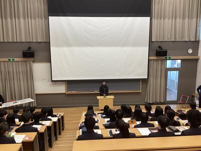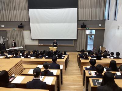 はじめに、校長先生から激励のメッセージが送られ、受験生たちは翌日から始まる試験に向けて決意を新たにしていました。そして年次主任の先生、担任の先生からの心温まるメッセージや、実体験をふまえたアドバイスなどが続きました。最後に進路担当の先生から、受験上の諸注意や前日の過ごし方など本番に向けての最終確認があり、激励会を終えました。