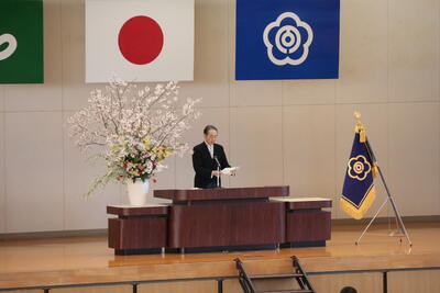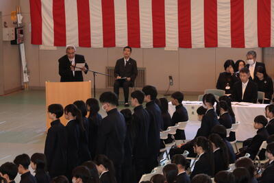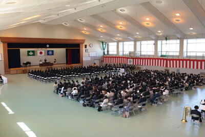 吹奏楽部の演奏による国歌斉唱に続いて、クラス担任の先生の呼名で元気よく返事を行い、校長先生より入学が許可され、晴れて宮城県石巻好文館高等学校の一員となりました。