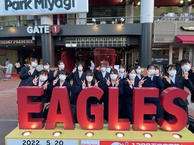 私達は5月20日(金)に楽天生命パーク宮城にて,2022年度東北楽天ゴールデンイーグルス主催試合国歌斉唱に出演させて頂きました。大勢の観客の皆様に私達音楽部の歌声が届けることができました。また試合も観戦することができ,貴重な一日となりました。これからも日々の積み重ねを大切にして頑張ります。(音楽部部員一同)