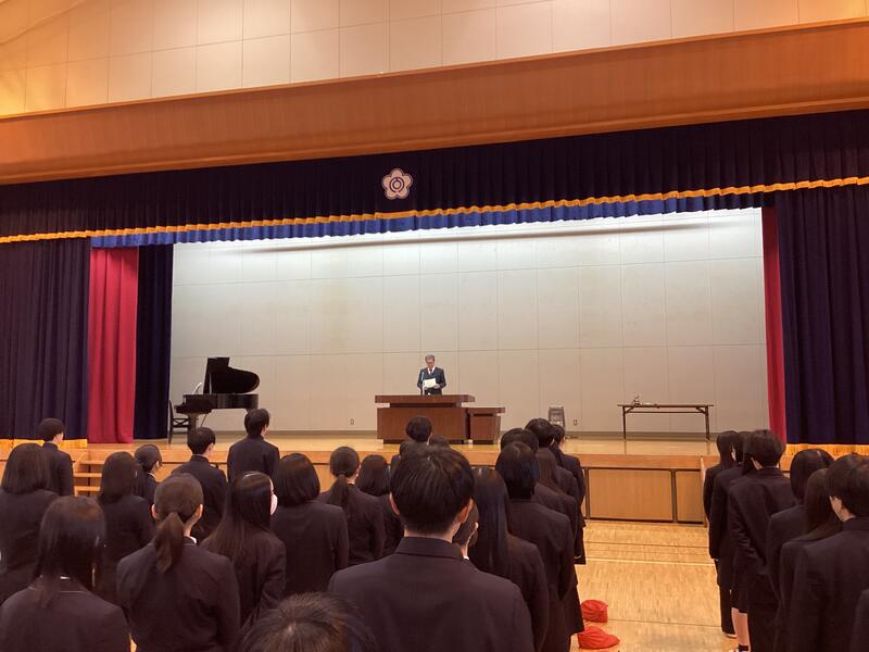 「来年は午年、情熱や変化を象徴する年です。生徒の皆さんも進化する一年にしましょう。自分を進化させる具体的なやり方を伝えます。まず、自分の最終形を思い浮かべ、口にします。「○○になる!」と、明確に声に出して言いましょう。次に、それを紙に書き、毎朝読み上げて一日をスタートします。こうすることで、希望が動き出します。どんな無謀なことでも、実現できます。私はこれを、ムキムキ作戦と名付けました。無謀を希望に変えろ、好文生!」とのお話がありました。