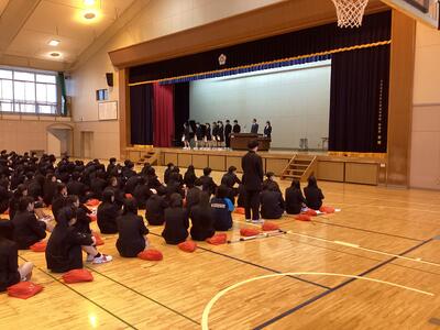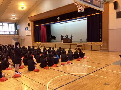 12月24日(水)、冬休み前の全校集会が開かれました。 集会では、校長先生より、